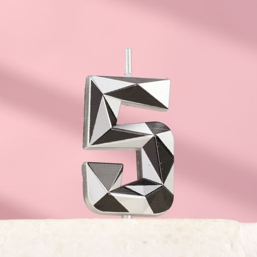 Цена за 3 шт. Свеча для торта «Алмаз», цифра 5, серебристый металлик
