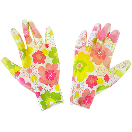 • Перчатки полиэстер, обливные, покрытие из нитрила, размер L (9) "Цветы" розово-зеленый (Китай)