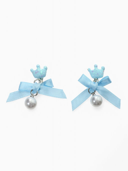 • Серьги-клипсы детские «Выбражулька» корона с бантом и жемчужиной, голубой-белые