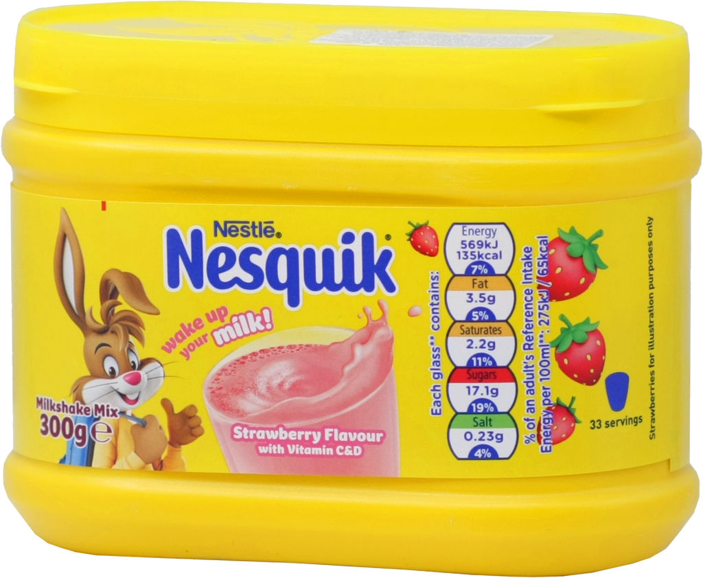Новинка от Nesquik! Сухая смесь для молочного коктейля со вкусом клубники.Добавьте пару ложек смеси к 200 мл молока и у вас получится потрясающее нежное клубничное лакомство! В составе: сахар, рисовая мука, краситель (свекольный красный), натуральный ароматизатор.