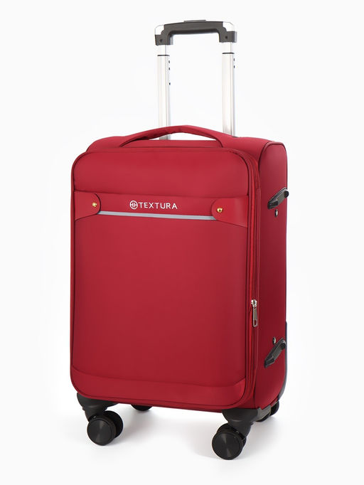 • Чемодан 20",Текст,36*25*58,отд на молнии,1 нар/карм, увелич,код замок,4 колеса, красный