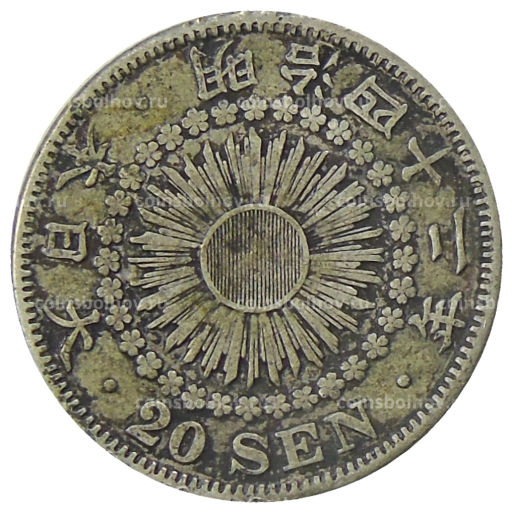 Монета 20 сен 1909 года Япония