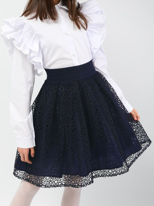 Юбка для девочки Соль&Перец. Эффектная юбка, с широким, эластичным поясом, сзади застёгивается на молнию золотистого цвета. Верхний слой - плотная сетка, с интересным плетением. Низ - лёгкий, атласный подклад. Прочный, износоустойчивый материал позволит надолго сохранить форму и привлекательный внешний вид изделия. Универсальный вариант как для школы, так и для торжественного мероприятия.