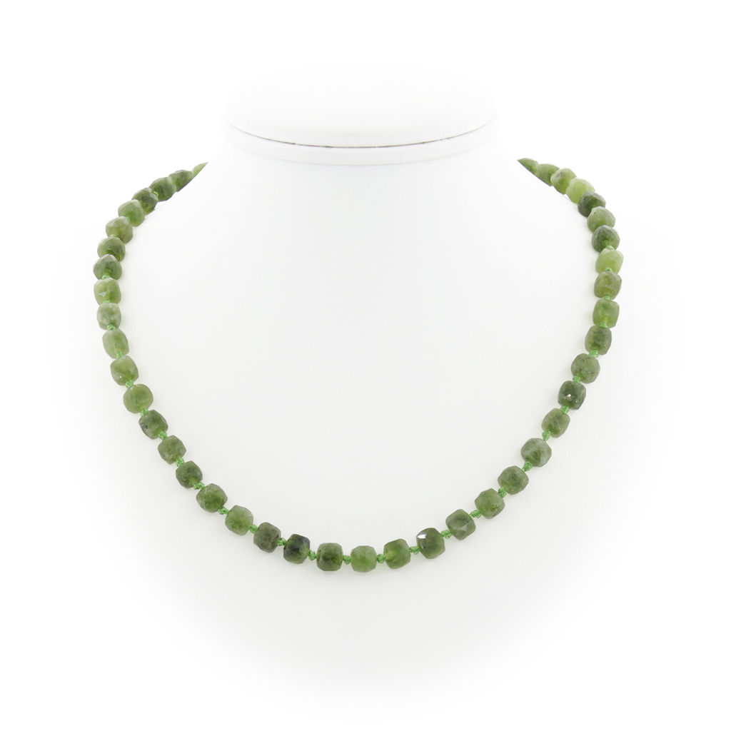 Нефрит, кубики гранёные 7мм, "Текта" бусы длиной 46см