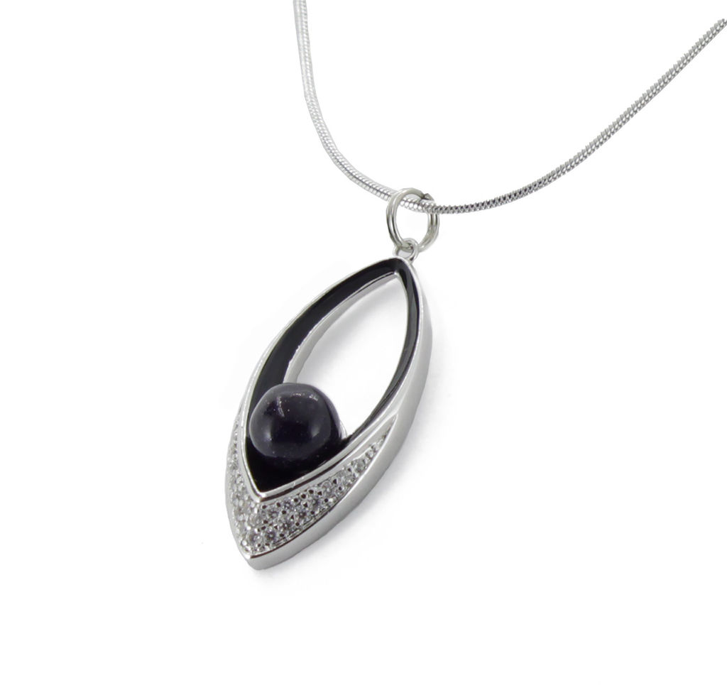 Кулон на цепочке с вставкой из синего авантюрина дополнит Ваш повседневный или праздничный образ. Размер кулона 16x31мм. Диаметр вставки из авантюрина 8мм. Длина цепочки 49см