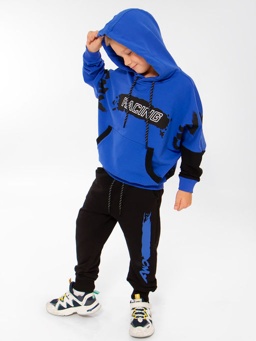Спортивный костюм для мальчика из натурального хлопка - футера. Кофта с капюшоном и карманом-кенгуру. Брюки на широком эластичном поясе с кулиской, брючины на манжете.