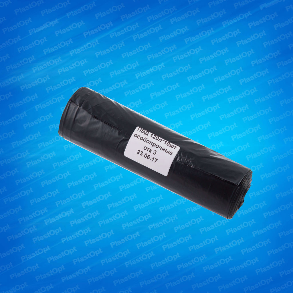 • Мешок ПВД 120 л 10 шт. (черные) в рулоне Особопрочные (ЗД)