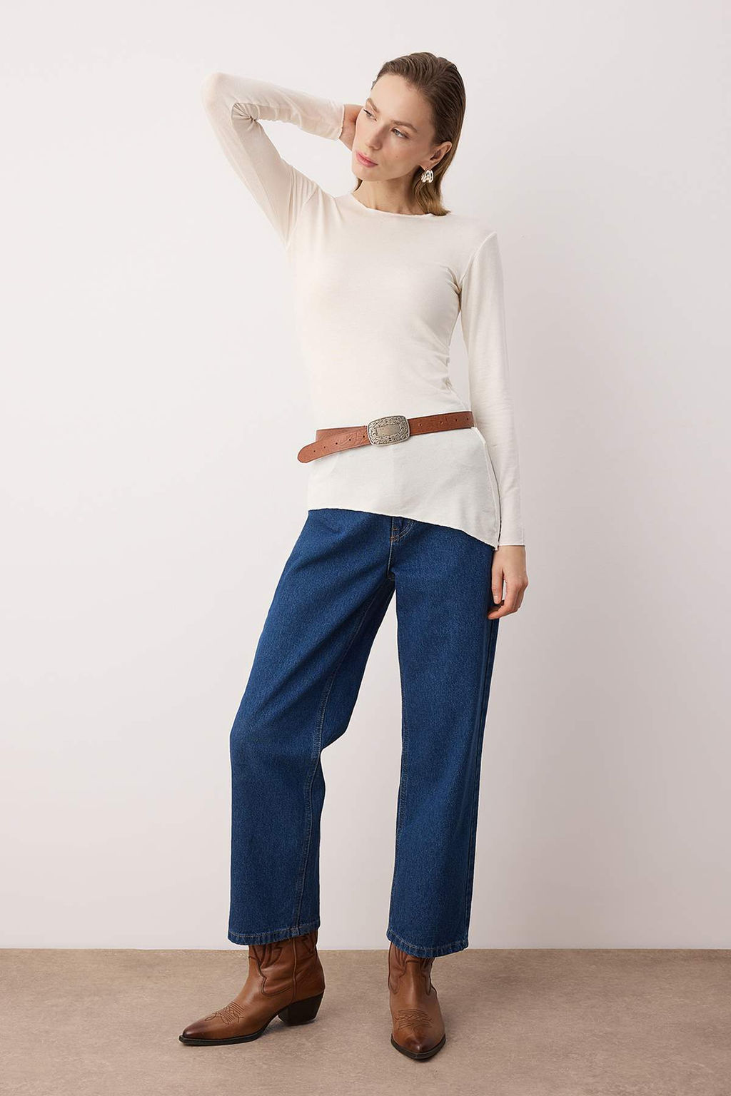 • Ekru Asimetrik Uzun Kollu Premium Yumusak Orme Bluz TWOAW26BZ00364