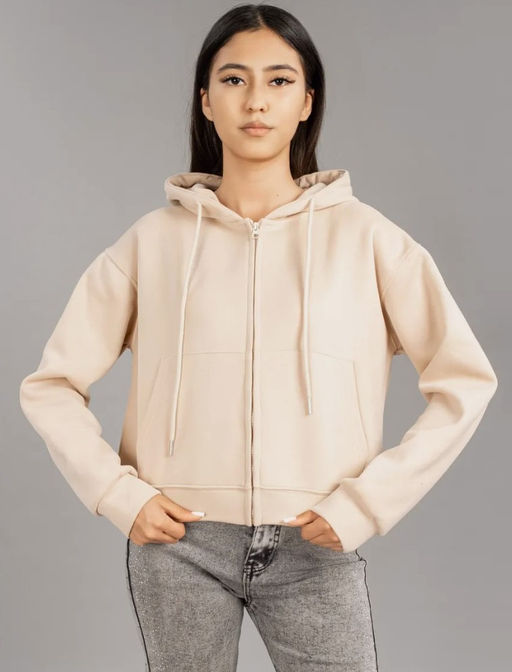 K12740 Толстовка на молнии с капюшоном OVER SIZE (плотный хлопок) БЕЖЕВЫЙ