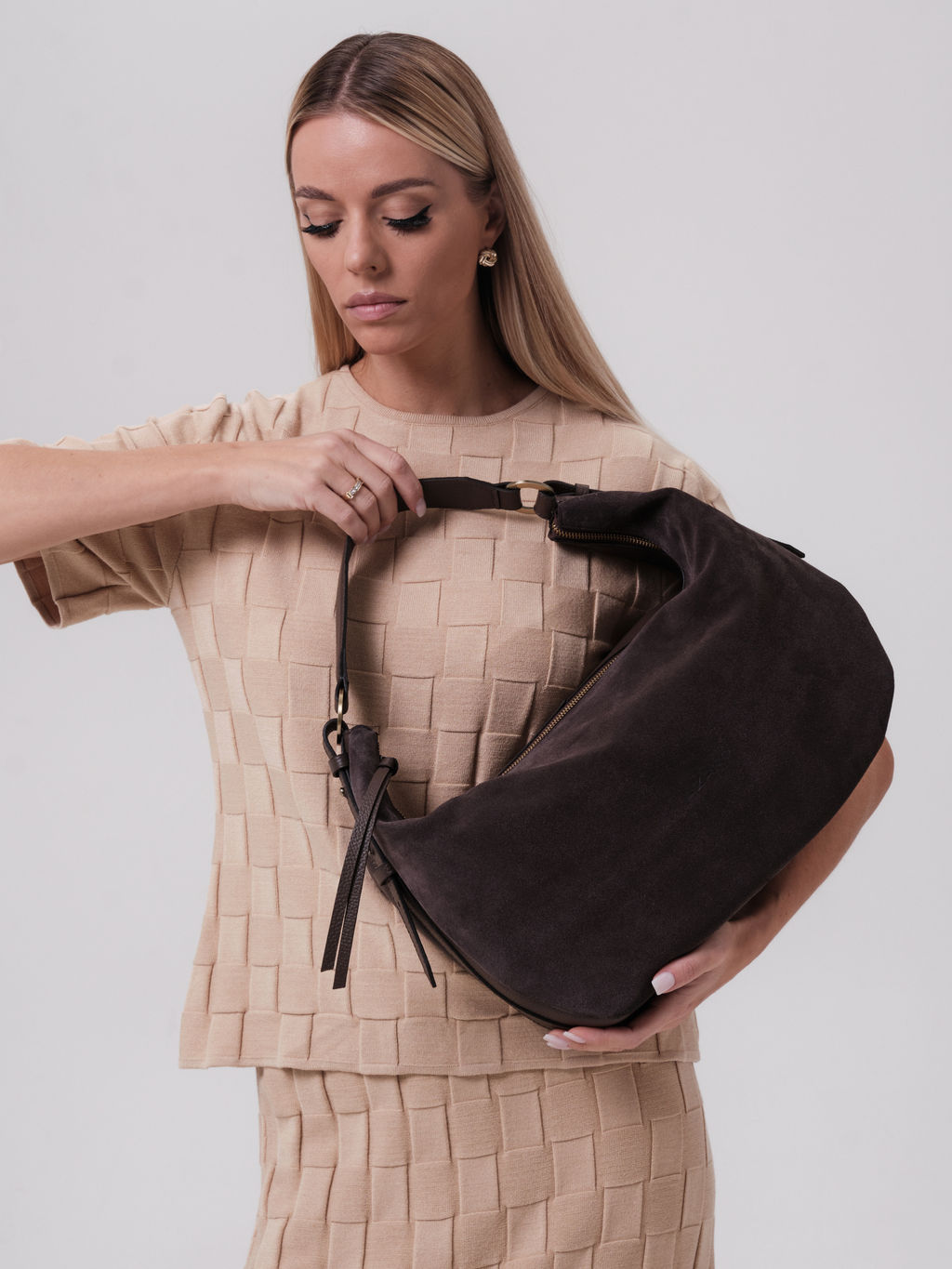 Женская сумка Azaro 30861 коричневый торф сочетает в себе стиль и практичность, что делает ее незаменимым элементом вашего гардероба. Детали: натуральная замша, натуральная кожа, 1 внутреннее отделение на хлопковой водонепроницаемой подкладке, 1 внутренний закрытый карман на молнии, 1 внутренний открытый карман, 1 внешний закрытый карман на молнии, металлические молнии с пуллерами из натуральной кожи. Сумка изготовлена из натуральной кожи и замши с разных сторон, что обеспечивает долгий срок службы и элегантный внешний вид. Классический дизайн подойдет как для повседневной носки, так и для более формальных мероприятий. Вы без труда сможете разместить в ней все необходимые вещи. Удобные ручки позволяют носить сумку на плече, на локте или в руках. Сумка хобо стильно смотрится и прекрасно вписывается в любой образ, подчеркивая ваше чувство стиля. Натуральные материалы гарантируют, что изделие прослужит вам долго. Преобразите свой повседневный стиль с нашей женской сумкой AZARO, которая не только отвечает всем современным требованиям, но и становится базовым элементом вашего образа. -- Характеристики -- Цвет: коричневый торф Материал: Натуральная кожа;Замша натуральная Бренд: Azaro Тип: Сумка на плечо Страна-изготовитель: Россия Высота, см: 15 Ширина, см: 32 Глубина, см: 11 Материал подкладки: Хлопок Количество внутренних отделений: 1 Количество внешних карманов, шт: 1 Тип застежки: Молния Формат А4: не вмещает Высота ручек, см: 22 Вес товара, г: 680 Ручки: На локоть;На плечо ВыгружатьНаСайт: Да