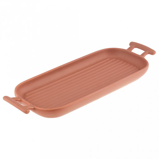 • Форма для запекания керамическая "Модерн" 360мл, 26,5х10,8х2,5см, гриль, прямоугольная, 2 ручки, общая длина 32см, терракотовый, в коробке (Китай)
