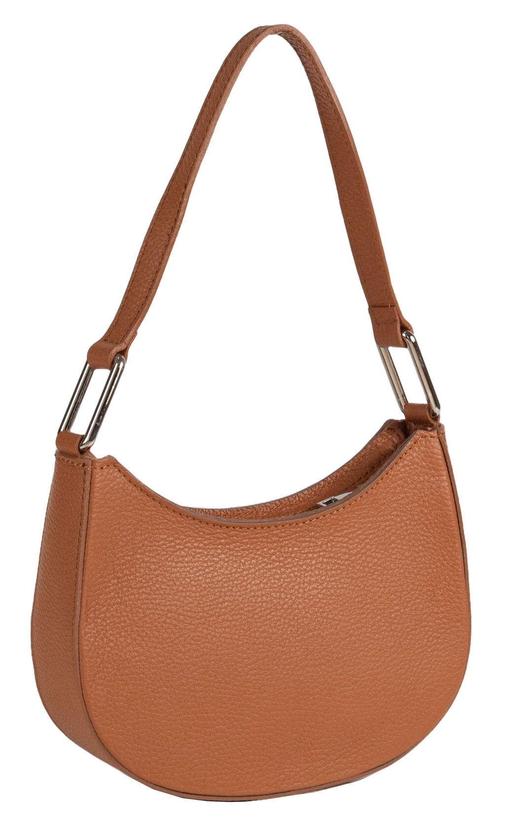 Страна: Италия Акции: Товары со скидкой Производитель: Pelletteria Luisa, Italy Размер: маленькая Стиль ношения: длинные ручки на плече Форма: полужесткая Выделка кожи: зернистая износостойкая Цвет кожи: Рыжий Оттенок: терракотовый Палитра цветов: TB-101117 Размеры: длина: 22 см \tвысота: 13 см \tширина: 7 см \tвысота ручки: 24 см \t Описание: \t Изящная и лаконичная женская сумка из натуральной кожи, производство Италия. Коллекция Весна-Лето 2024, Sefaro. Сумочка полужесткой каркасной формы полумесяца, небольшая, выполнена из мягкой телячьей кожи зернистой износостойкой выделки прочной и надежной. Легко сочетается с вещами в стиле Casual, будет органично смотреться в классическом, деловом, либо повседневном образах. Закрывается на молнию, внутри 1 отделение, на боковой стенке 1 накладной тканевый кармашек для мелочей. Внутренняя отделка - качественная, водоотталкивающая, приятная на ощупь и долговечная в использовании, ткань. В модели используется качественная итальянская фурнитура в серебряном цвете. В комплекте идет плечевой кожаный ремешок, который регулируется по длине (максимально до 120см). Высота ручки 24см указана от центра модели. Сумку удобно носить в руках, на плече или на ремешке через плечо практично и комфортно!