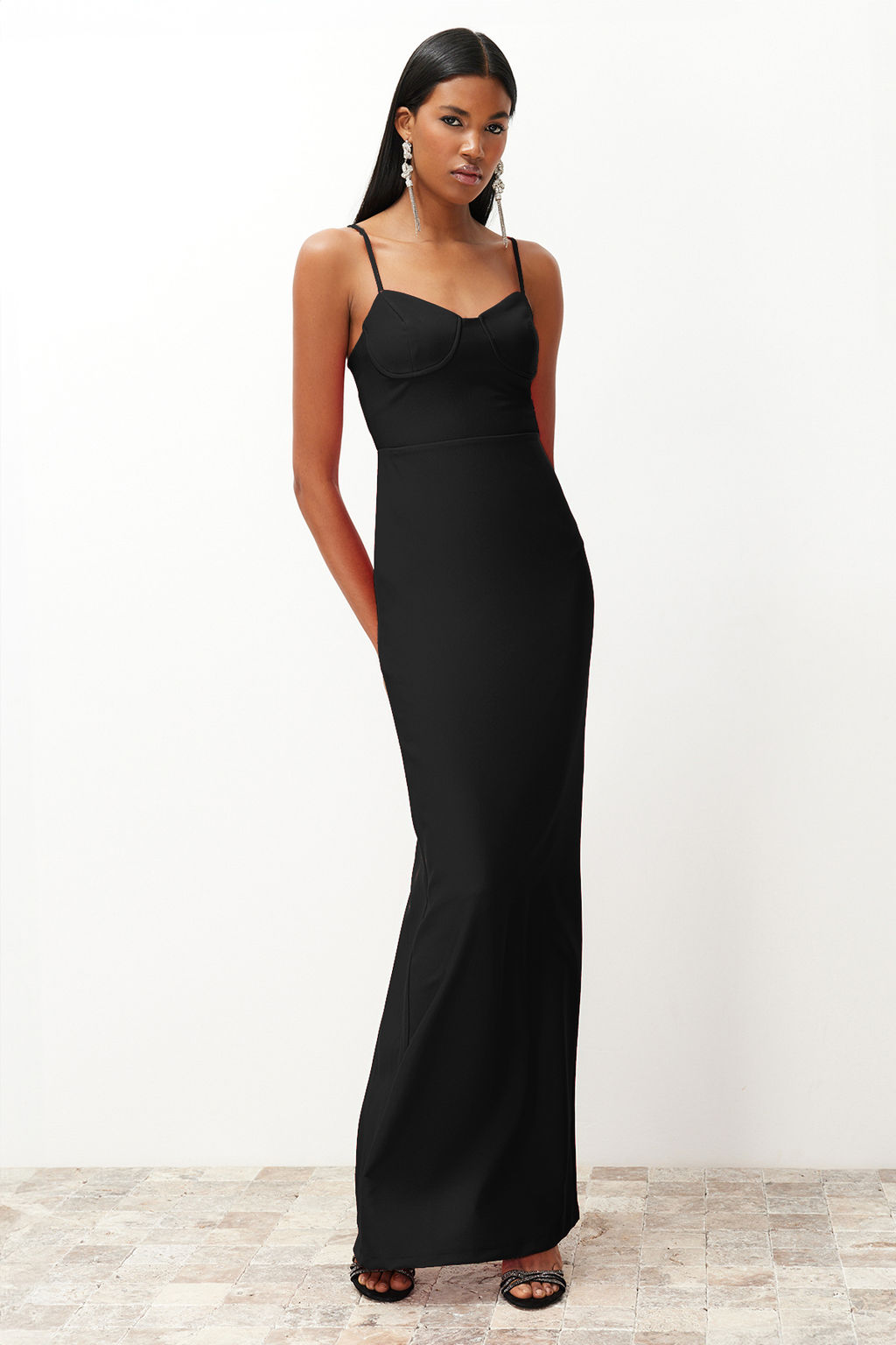 • Siyah Gogus Detayl? Vucuda Oturan Dokuma Uzun Gece Abiye Elbise TPRSS24AE00115