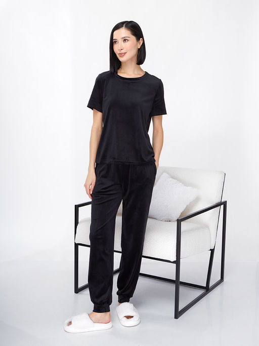 Костюм из велюра c коротким рукавом OD-889-1 черный