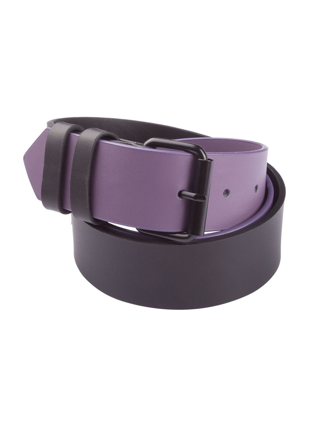 Классический широкий ремень выполнен из натуральной кожи двух цветов, декорирован пряжкой черного цвета. Контрастное сочетание черного и фиолетового, использованное в оформлении, выглядят очень оригинально и подчеркивают незаурядность обладательницы аксессуара.