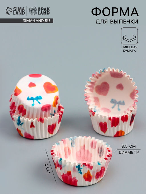 Эти бумажные формы для кексов с рисунком сердечек станут отличным выбором как для выпечки, так и для создания праздника. Их универсальный дизайн делает их идеальными для Дня святого Валентина, дней рождения и других особых событий.Преимущества использованияУдобство: Одноразовые бумажные формочки упрощают процесс выпечки и подачи, избавляя от необходимости чистки.Креативный дизайн: Сердечки на поверхности добавляют милый декоративный элемент всем вашим десертам.Универсальность: Подходят для маффинов, капкейков и тарталеток, что позволяет вам раскрыть ваше кулинарное мастерство.Экологичность: Изготовлены из высококачественной бумаги плотностью 80 г/м², что делает их более устойчивыми и безопасными для окружающей среды.Компактные размеры: Диаметр 3,5 см и высота 2 см — идеальные пропорции для сервировки индивидуальных порций сладостей.Эссенция праздникаДобавьте атмосферу любви и радости в каждое мероприятие — начиная от романтического ужина до детского дня рождения. Сделайте выбор в пользу легкости, стиля и качества на каждом шагу приготовления и использования с этими формами. Набор: Нет. Вид упаковки: Для капкейков. Вид упаковки: Для кекса. Форма: Круглая. Плотность, г/м²: 80. Диаметр, см: 3.5. Ширина, см: 3.5. Высота, см: 2. Вместимость, шт.: 1. Высота стенки, см: 2. Фасовка, шт.: 300. Тематика: С сердечками. Вид упаковки: Бумажная обертка. Рисунок: Да. Крышка: Нет. Тематика праздника: 14 Февраля. Тематика праздника: День рождения. Тематика праздника: Универсальная тематика. Тип покрытия: Без покрытия. Ячейки: Нет. Тип формы: Для кексов. Разъёмная форма: Нет. Вид: Упаковка для маффинов/макарони. Вид: Тарталетки. Вид еды: Для десертов. Вид еды: Для пирожных. Можно мыть в посудомоечной машине: Нет. Перфорированные: Нет. Дизайн: С рисунком, надписью. Бесплатная доставка: Да. Примечание: Цена указана за 1 штуку. Отгрузка товара производится крупной фасовкой..