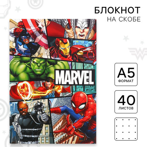 • Блокнот А5, на скрепке, 40 листов, в точку, Мстители