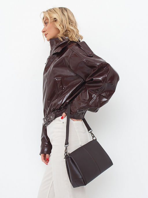 Базовая модель, выполнена из натуральной зернистой кожи. Декорирована пластиковой цепочкой, которую можно использовать как ручку или как декоративный элемент. Дополнена серебристой фурнитурой. Данная модель закрывается на молнию. Каркас полужесткий. В комплекте съемный плечевой ремень с регулировкой длины, крепятся за карабины.
