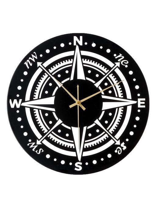 Часы настенные интерьерные «Компас», бесшумные, плавный ход, d=40 см, металл, чёрные