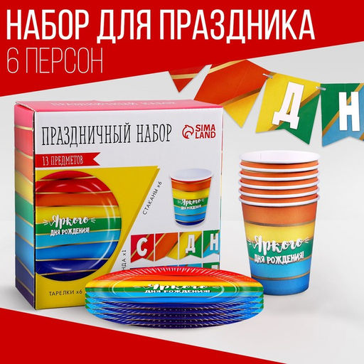 Количество персон: 6. В наборе, шт.: 13. Рисунок: Да. Тематика праздника: День рождения. Бесплатная доставка: Да. Наша разработка: Да.