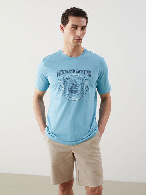 Bisiklet Yaka Bask?l? Penye Erkek Ti??rt