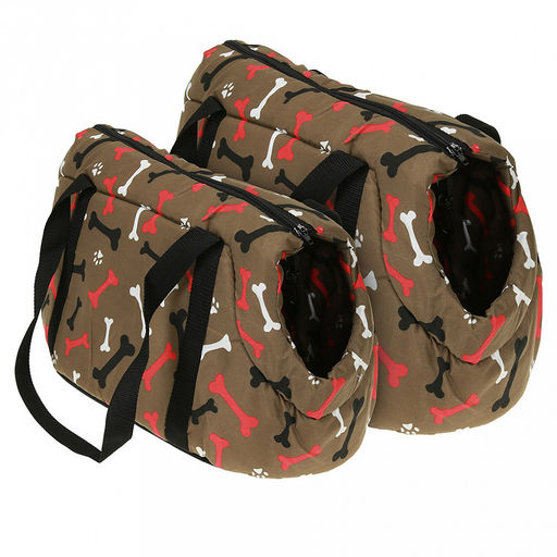 • Сумка-переноска для кошек и собак набор 2шт: 42х25х27,5см, 35х20х22,5см "Косточка", ткань х/б, синтепон, коричневый (Китай)