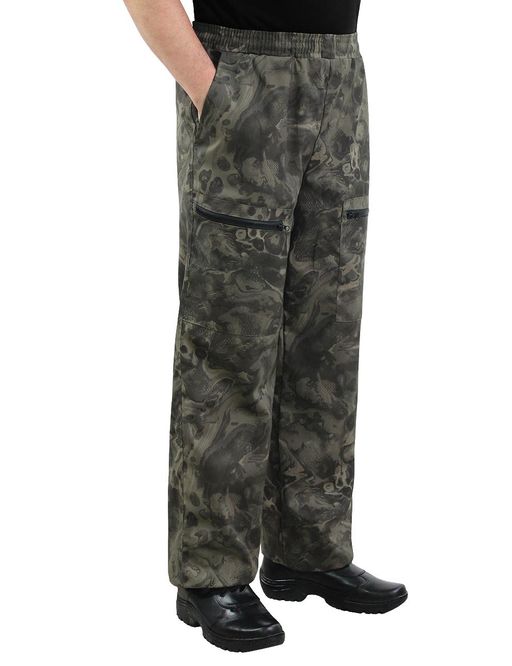 Брюки на притачном поясе на резинке, спортивного образца, дополнительно оснащены шнурком для лучшей фиксации, карманами с отрезным бочком, на передней части бедра объёмные накладные карманы на молнии. Удобная, универсальная модель. Рекомендуемые материалы: смесовые ткани. ГОСТ 25295-2003