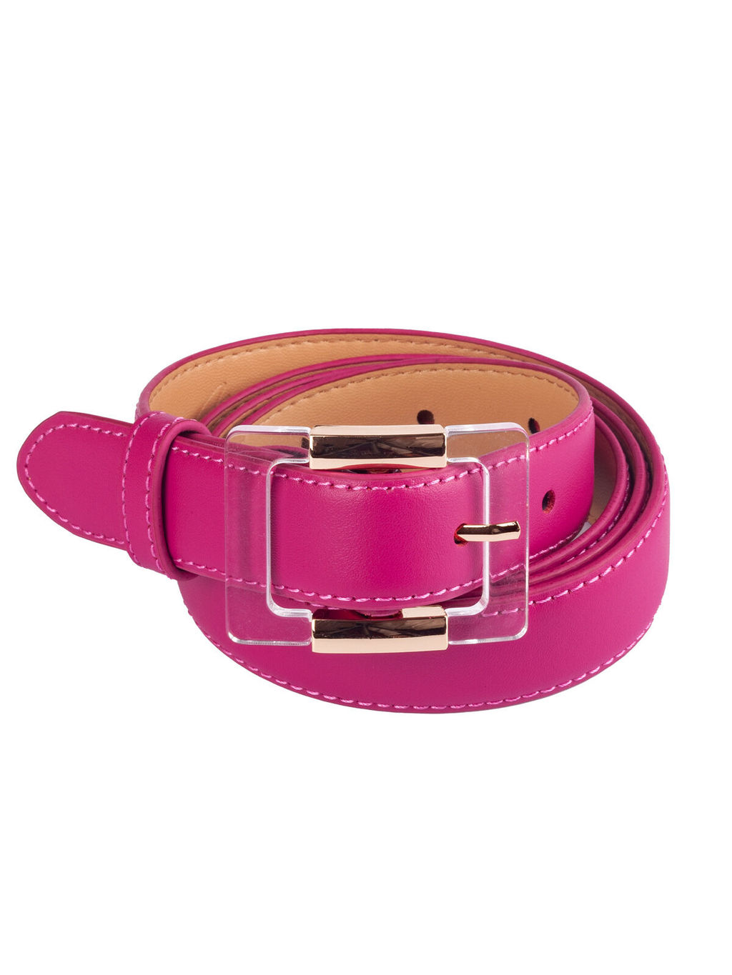 Классический ремень актуального в этом сезоне цвета фуксии из высококачественной натуральной кожи с модной прозрачной пряжкой. Такая модель визуально удлиняет и моделирует стройный силуэт, придавая ему изящности и элегантности. Аксессуар подойдет к любой фигуре и добавит завершенность и лоск внешнему виду.