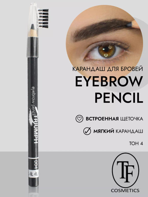 Карандаш для бровей Eyebrow Pencil Triumph изысканная форма и цвет бровей, со специальной встроенной щеточкой в колпачок, идеально подчеркивает линию и форму бровей, позволяет их расчесать и добиться привлекательного изгиба. Благодаря мягкой текстуре, карандаш наносится точно и равномерно легкими штрихующими движениями, удобно прорисовывает недостающие волоски по линии их роста. Встроенная в колпачок щеточка позволяет равномерно распределять пигмент, аккуратно удаляя его излишки, подчеркивая природную красоту бровей.