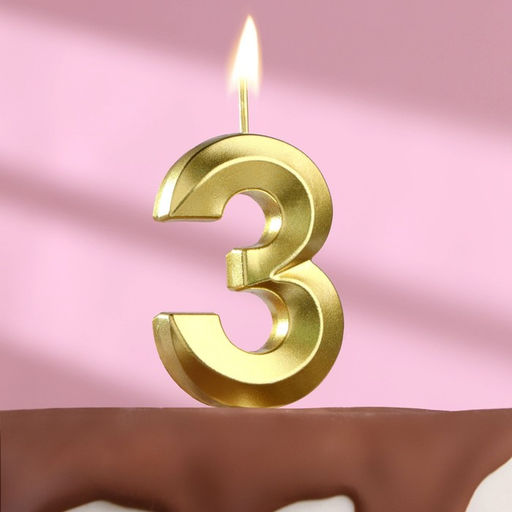 • Цена за 4 шт. Свеча в торт на шпажке «Цифра 3», золотая, 5 см