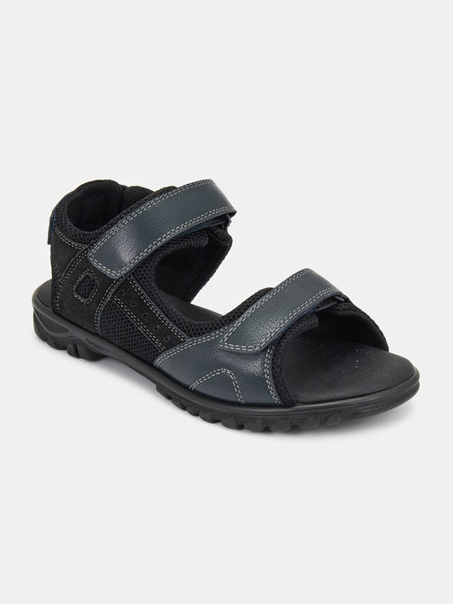 Детские сандалии ЗОРГ-Д синего цвета с черной отделкой для мальчиков. Верх выполнен из сетчатого текстиля, натуральной кожи и спилка. Удобные застежки-липучки регулируют посадку, они позволят ребенку легко обуваться самостоятельно. Стелька из искусственного материала прочная, надолго сохранит свой вид, что особенно важно для открытой обуви. Отверстия перфорации отводят влагу и обеспечивают стопе дополнительное дыхание. Толстая подошва из полиуретана легкая и упругая, с ней ноги будут меньше уставать. Синие сандалии для мальчиков подойдут для прогулок, внешкольных занятий и отдыха на природе.