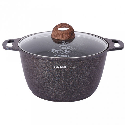• Кастрюля с антипригарным покрытием 6л, д28см "Granit Ultra", h15,5см, стеклянная жаропрочная крышка, ручка из термостойкого пластика, голубой гранит (Россия) - можно использовать металлические кухонные принадлежности