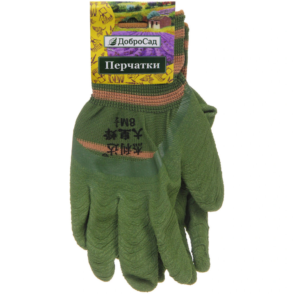 • Цена за 12 шт. Перчатки нейлоновые "Полоска" с резиновым покрытием полуоблитые, зеленые 8 р-р ДоброСад