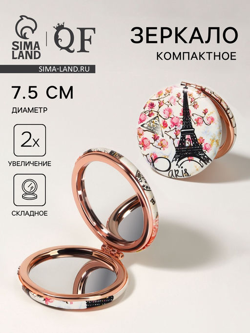 • Зеркало складное «Париж», d=7.5 см, с увеличением х2, искусственная кожа, белое