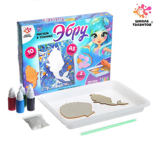 • Набор для творчества «Рисуем в технике Эбру. Русалочка», 10 листов, А5, 2 деревянных трафарета