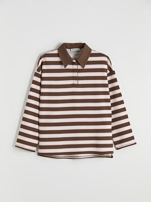 • Polo Yaka ?izgili Kad?n Sweatshirt Tunik