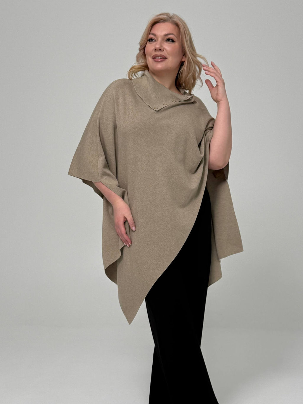 Пончо с ассиметричным низом и воротником на пуговицах бежевое­