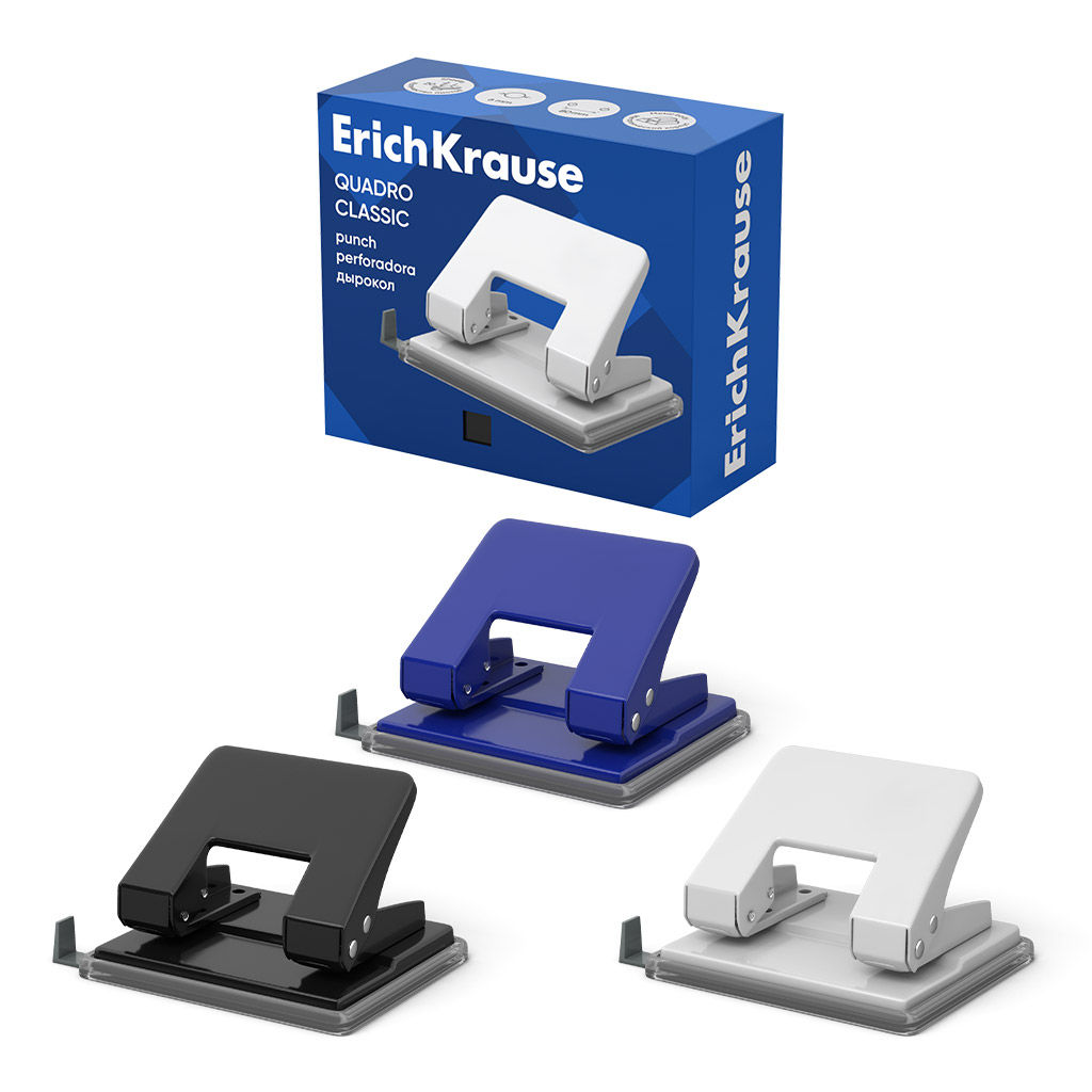 • АКЦИЯ Цена за 12 шт. Дырокол ErichKrause Quadro Classic до 20 листов, ассорти (в коробке по 1 шт.)