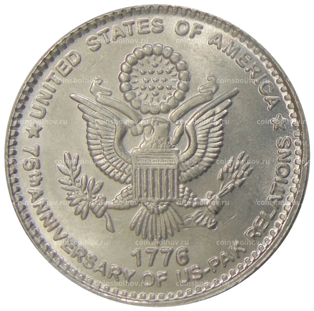 • Монета 75 рупий 2022 года Пакистан  75 лет отношениям с США