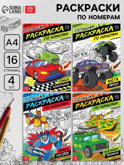 • Раскраски по номерам Для мальчиков, набор 4 шт. по 16 стр.