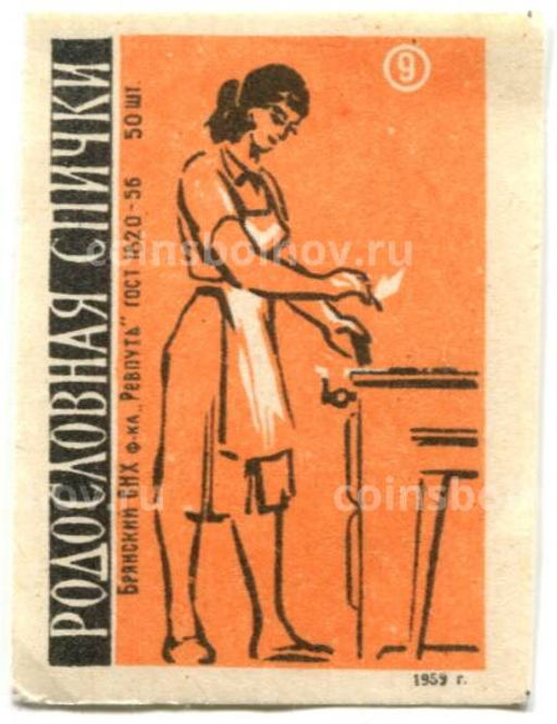 Этикетка спичечная Родословная спички №9 фабрика Ревпуть