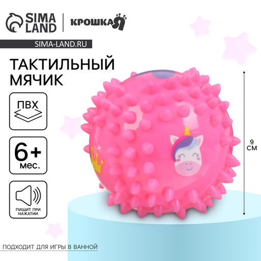 Мячики торговой марки Крошка Я обладают рельефной поверхностью, способствующей развитию мелкой моторики и тактильных ощущений. Фактурная поверхность стимулирует и благотворно воздействует на нервные окончания, ответственные за большинство процессов в организме! Игрушкой можно не только играть в комнате, можно купаться, заниматься и делать массаж крохе. Яркие цвета мячиков помогают развить зрение.⠀Развивающие мячики разрабатываются специально для детских ручек из приятного и полностью безопасного материала. Набор: Нет. Для кого: Для девочки. Диаметр, см: 9. Возраст: От 6 месяцев. В наборе, шт.: 1. Звук: Да. Развитие навыков: Моторика. Развитие навыков: Фигуры, цвета. Дополнительные функции: Плавающая. Дополнительные функции: Звуковые эффекты. Бесплатная доставка: Да. Наша разработка: Да.