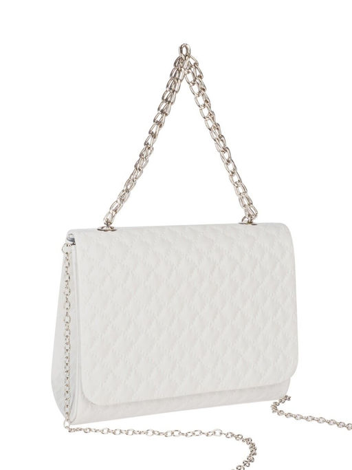 Классический стеганный клатч белого цвета из экокожи с ручкой-цепочкой. Лаконичный дизайн аксессуара вошел в историю моды благодаря знаменитой мадемуазель Коко Шанель и стал воплощением элегантности и стиля. Внутри - одно отделение, застежка - кнопка.