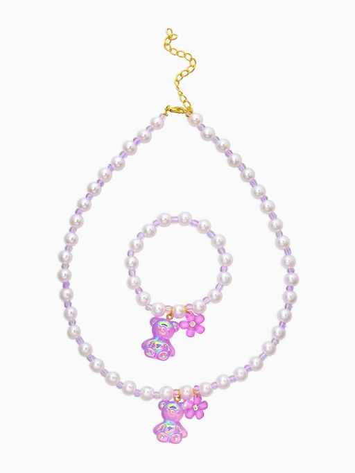 • Набор детский «Выбражулька. Мармеладный мишка», 2 предмета: бусы, браслет, белый, фиолетовый