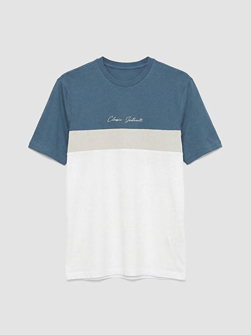 • Bisiklet Yaka Renk Bloklu Penye Erkek Ti??rt