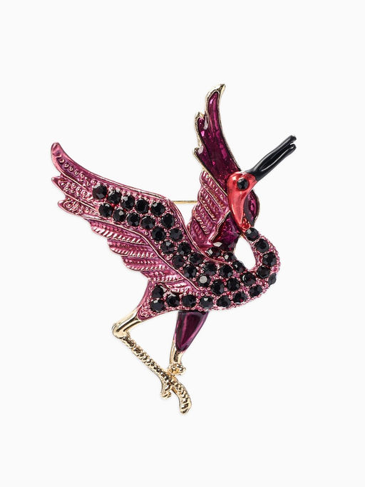 • Брошь «Птица» аист, стразы, цвет фиолетовый в золоте