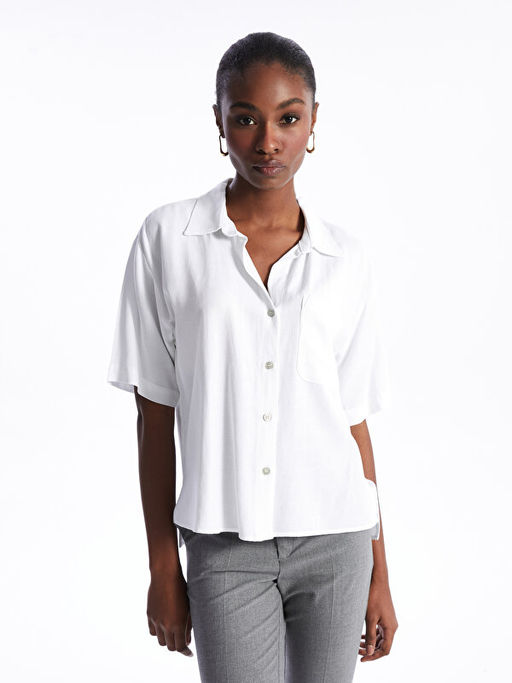 • D?z K?sa Kollu Keten Kar???ml? Kad?n G?mlek