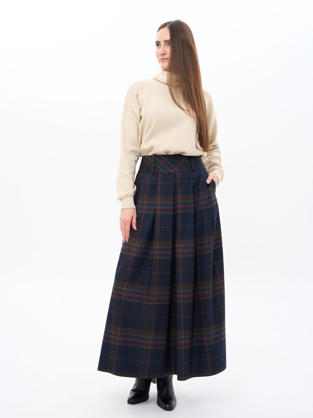 Женская юбка, расклешенная от пояса к низу, с обтачным поясом на шлевках. Застежка расположена сзади по среднему шву на потайную тесьму молнию, по бокам два удобных, вместительных кармана. Великолепный женский вариант юбки в пол, широкая кокетка на шлевках, подчеркнет фигуру на уровне бедер, а длинна изделия, прекрасная расцветка и мягкие складки не оставят равнодушными самых взыскательных модниц.