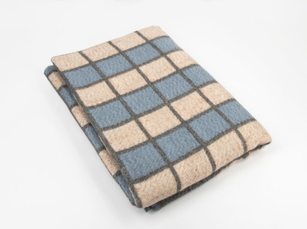 • Одеяло п/шерсть 50% 140*205 ОПШ-4 беж-сер-синяя клетка