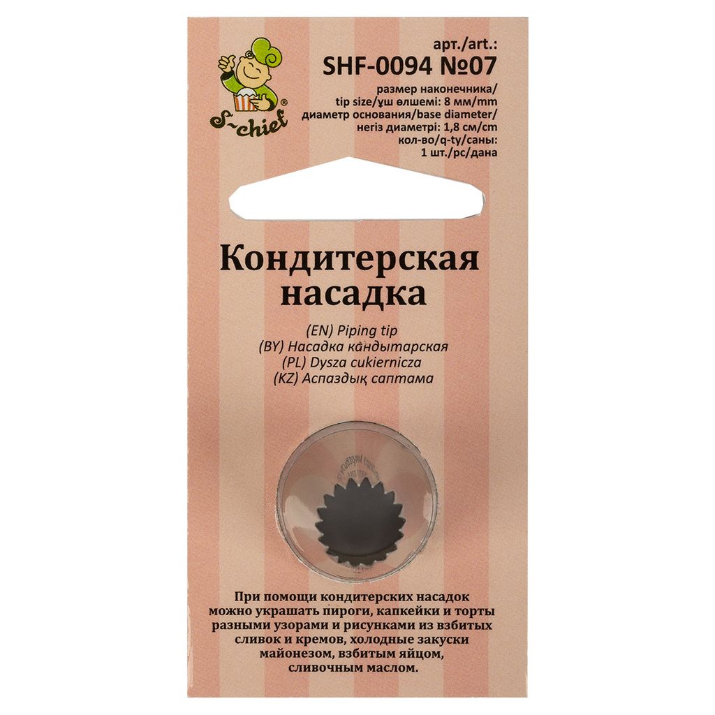 S-CHIEF SHF-0094 Кондитерская насадка d основания 18 мм нержавеющая сталь 1 шт № 07 французская звезда